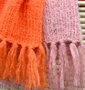 De sjaal is gebreid met 1 draad silky kid en 1 draad Lazy linen