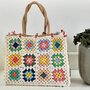 Dit pakket bevat - Fonty Scarlett: 8 x 50 gr van verschillende kleuren, 4 x 50 gr van de hoofdleur. - Grote jute tas - Digitaal haakpatroon