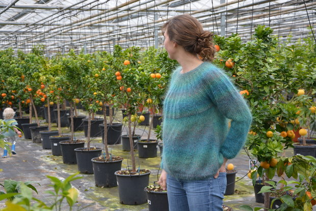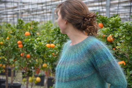 De trui is gebreid met 1 draad Kid Annell en 1 draad Angel