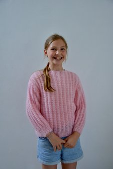Pola, trui in fantasiesteek Dit patroontje staat ook in boven de wolken 23   Maten 8-10-12 jaar XS-S-M-L-XL   Benodigdheden Breigaren: Fonty kidopale: (8-8-10)...