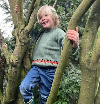 Staf, trui met vosjes Maten (6-12-18) maanden, 2-4-6-8-10 jaar   Benodigdheden Breigaren: Fonty Numero 5: (4-4-5) 5-6-6-7-7 x 50 gr (75m), 1 x 50 gr van wit, oranje en zwart....