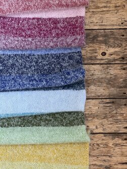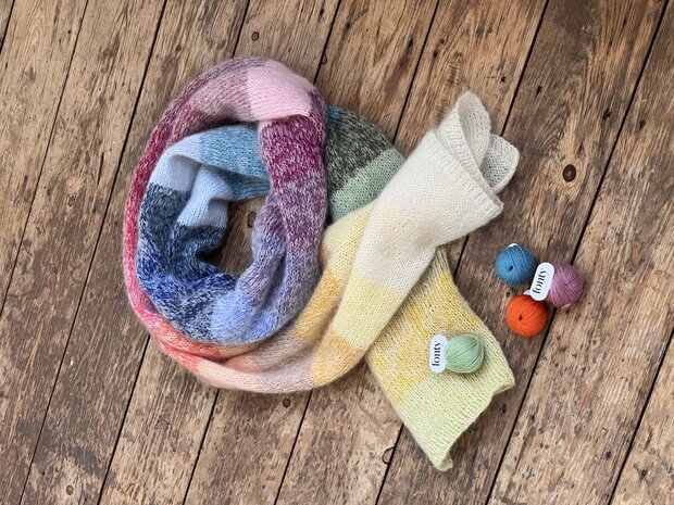 De sjaal is gebreid met 1 draad Kidopale en 1 draad Zéphir