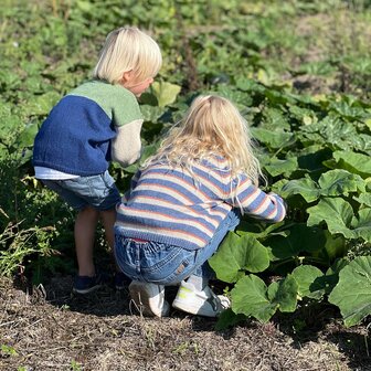 Maten 3-6-12-18 maanden 2-3-4-5-6-8 jaar   Benodigdheden Breigaren: BC garn Bio balance: (1-1-2-2) 2-2-3-3-3-3 x 50 gr (225 m) van kleur blauw en beige 1 x 50 gr (225 m) van kleur...