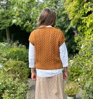 Stella, debardeur met kabel Maten 8-10-12 jaar XS-S-M-L-XL   Benodigdheden Breigaren: Fonty Polaire: (6-7-8) 9-10-11-12-13 x 50 gr (100m) Breinaalden: nr. 4,5 en 5...