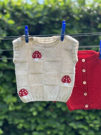 In tricotsteek: 10 x 10 cm = 23 st. en 32 nld.